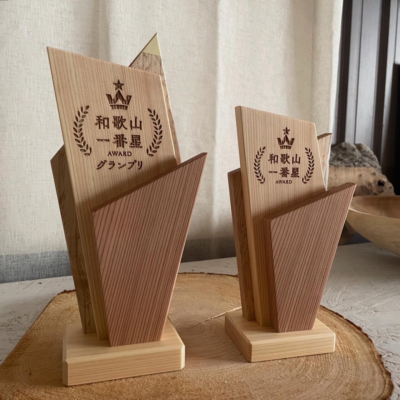 本体の木は和歌山のスギ、ヒノキ、シイノキで、木そのもの色を組み合わせました。